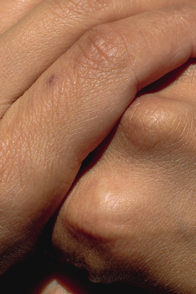 El hecho que la rama esta sobresaliendo, como rompiendo el árbol, me hizo pensar en el dolor físico que siento en los nudillos.